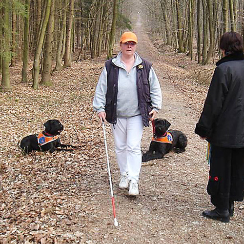 Angst und Hilflosigkeit löst die simulierte Blindheit bei Manuela aus, bei mir eher die Neugier, wie sich meine anderen Sinne bewähren. Wir können die Situation jedoch unterbrechen. Kathrin nicht – sie lebt damit, jedoch nicht von Anfang an. „Retinopathia pigmentosa“ diagnostizieren die Ärzte als sie 15 Jahre alt war. Für die Eltern ein herber Schlag, dass das jüngste der fünf Kinder mit Blindheit geschlagen sein sollte. Nur ab wann, konnte keiner vorher sagen. Informationen vom Arzt gab es nicht, die musste sie sich zusammensuchen und erfuhr so von ihrem Krankheitsbild und auch, dass nie jemand sagen konnte, wann die Blindheit so gravierend sein würde, dass ein „normales“ Leben nicht mehr möglich sein würde. Die Eltern reagierten dennoch sofort und belegten Radfahren, Rollschuh fahren oder Zeitungen austragen mit Verboten. Für eine 15-jährige junge Frau schwer zu verstehen und zu ertragen, noch ging ja alles. Erst mit 38 Jahren erlebte sie einen großen Schub, der in der Folge die Bezeichnung „gesetzlich blind“ einbrachte. Schwierig war für Kathrin die Zeit, in der sie sich zur Krankheit bekennen musste. Sie vermied Treffen in Restaurants, sie lernte Toilettengänge in der Stadt zu umgehen, aber doch standen zahlreiche Laternen im Weg, die letztendlich das Bekenntnis zur Krankheit verlangten. So war der berufliche Weg auch von Fachschulen begleitet. Über die gelernte Masseurin zur Büroleitung erlebte sie viel Abwechslung und viele Änderungen. Den Lebenspartner lernte sie schon nach der Ausbildung kennen, verlor ihn aber früh durch ein Herzversagen.