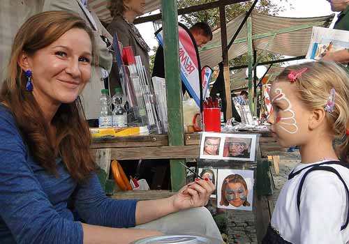 Faszination Netzwerken war das zentrale Thema des Standes an dem Silke Landgraf mit Mann und Michael Ebbinghaus zu Austausch, Kommunikation und Kennenlernen einluden. „Kontakte knüpfen – Kontakte pflegen“ ist der Leitspruch des berlinweiten Netzwerks, dass allen Bürgern offen steht. Einen Schritt weiter kamen wieder die Kinder zum Zuge. Antonija Soldo und Joanna Konojacky, Erzieherinnen der Kita Schlosskobolde im Gutshaus Lichterfelde, schminkten viele kleine Prinzessinnen, Elben, kleine Helden und wilde Tiere. Die wartenden Eltern bekamen gleich daneben ein Stück leckeren Kuchen aus dem Nachbarschaftscafé des Gutshauses und auf Wunsch Informationen und Auskünfte über das Stadtteilzentrum Steglitz e.V., dass den organisatorischen Rahmen für das Fest geboten hatte, und den Runden Tisch im Gutshaus Lichterfelde.